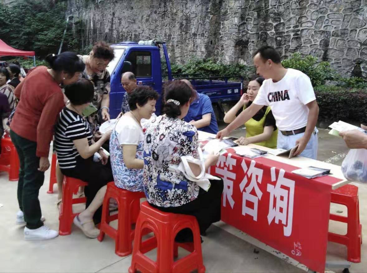演出活動中,襄沙化工廠和社區(qū)工作人員向觀眾發(fā)放創(chuàng)城和禁毒宣傳資料。
